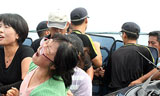 제주해군기지 공사 재개로 강정마을 주민과 연대 단체 회원, 평화운동가들이 대치하는 가운데 경찰이 강동균 마을회장 등 5명을 강제 연행하자 밤 1...