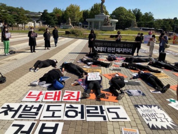 정부 ‘낙태죄’ 존치에 반발, 땅에 누워버린 여성 활동가들
