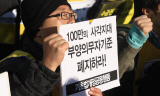 기초법개정공동행동 소속 회원 백여 명은 15일 종각 앞에서 기초법 개정 촉구 결의대회를 열었다. 이들은 올해 들어 가장 추운 날씨에도 두 시간여...