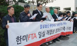 한미FTA저지범국민운동본부(범국본)는 18일 오전, 외교통상부 앞에서 기자회견을 열고 밀실 재협상 내용 공개와 중단을 요구하고 나섰다. 이들은 ...