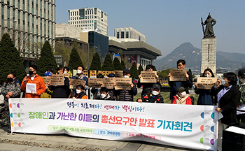 장애·빈민계가 코로나19 관련 긴급 대책과 총선 요구안을 발표했다. 빈곤사회연대는 3일 오전 10시 광화문 광장에서 기자회견을 열고 “우리 사회...