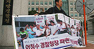 어청수 경찰청장이 시민단체의 '파면촉구 1인 시위' 중에 전북경찰청에 도착했다. 전북진보연대는 어청수 청장 방문에 맞춰 30일 아침 9시부터 전...