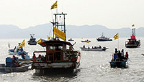20일 새만금 끝물막이 공사장에 어선 50여 척을 몰고 해상으로 나가 공사를 7시간 동안 저지 시켰던 새만금 피해 주민들이 21일 날이 밝자 또...