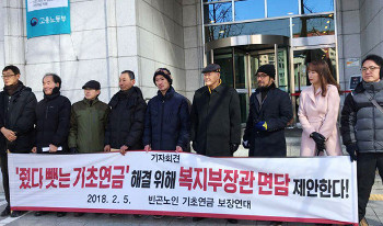 국민기초생활수급자 노인들이 ‘줬다 뺏는 기초연금 문제’를 박능후 보건보지부 장관이 해결하라고 촉구했다. 빈곤노인기초연금연대는 5일 보건복지부 장...