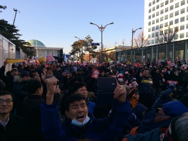 국회는 박근혜 대통령 탄핵 표결을 하루 앞두고 국민의 목소리를 모두 막았다. 약 5천 명의 시민은 오후 7시 여의도 산업은행 앞에서 ‘주권자 시...