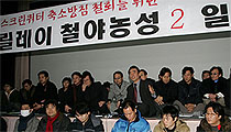 '문화침략 저지 및 스크린쿼터 사수를 위한 영화인대회'가 2월 8일 오후 2시 영화인과 시민 등 천여 명이 참가한 가운데 광화문 동화면세점 앞에...