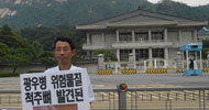 전 청와대 국민경제비서관이었던 정태인 민주노동당 한미FTA저지 사업본부 본부장이 28일 "미국산 쇠고기 수입 재개 중단"을 촉구하며 청와대 앞 ...