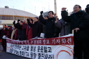 한미FTA저지범국민운동본부(범국본) 내 7개 각 부문별 공대위와 사회단체, 민주노동당은 18일 신라호텔 앞 장충교회에서 기자회견을 열고 한미FT...