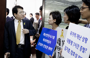새누리당이 29일 오후 3시께 세월호 국정조사 청문회 증인채택을 위해 특위를 단독으로 소집하자 야당 위원들이 국회 새누리당 국정조사 종합상황실 ...