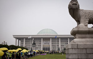 지난 15일 오후 3시 30분 안산 단원고에서부터 여의도 국회까지 이틀 동안 40여km를 걸어온 단원고 학생 43명이 세월호 특별법 제정을 위해...