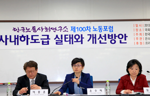 국회 환경노동위 은수미 민주통합당 의원이 이한구 새누리당 원내대표가 대표 발의한 ‘사내하도급 근로자 보호 등에 관한 법률 개정안’(사내하도급법)...