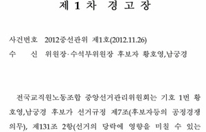 전교조 위원장 선거에서 중대한 불법을 저지른 기호 1번 황호영. 남궁경 후보가 징계차원으로 조합원에 보낸 사과문에서 새누리당식 유체이탈 화법과 ...