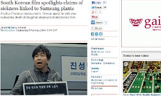 영국 <가디언>이 삼성반도체 백혈병 피해자 고 황유미 씨의 실화를 담은 영화, ‘또 하나의 약속’의 개봉과 함께 삼성 공장에서의 발병...