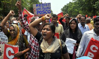 “포스코, 우리 생활터전 빼앗아갈 수 없다”...박근혜 대통령 인도 방문 반대 시위