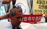 천주교 사제들이 4대강 사업 중단을 위한 삭발 기도와 릴레이 기도에 돌입했다. 이 자리에서 최재철 수원교구 왕곡성당 주임신부와 의정부교구 조해인...