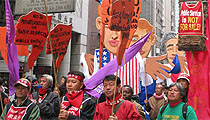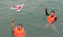 반 아펙 투쟁이 강과 다리에 의해 막혔다면 바다 위에 떠 있는 WTO 각료회의 컨벤션쎈터까지 헤엄쳐 가는 전술이 등장한 것이다.