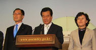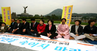 통합민주당, 민주노동당 등 야당 전현직 의원 및 당선자 16명이 미국산 쇠고기 수입위생조건 고시 저지와 전면 재협상을 촉구하며 20일 청와대 앞...