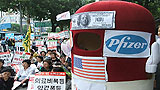 한미FTA저지 범국민운동본부(범국본)는 9일 광화문 청계광장을 중심으로 '한미FTA는 괴물이다' 2차 시민캠페인을 진행했다.