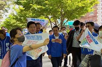 차별금지법 제정을 촉구하는 활동가들이 24일, 더불어민주당 송영길 서울시장 후보와 박홍근 원내대표의 지방선거 일정을 따라다니며 차별금지법을 신속...