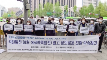 지구의 날인 22일, 석탄화력발전소 지역에 핵발전소 건설을 추진하려는 새 정부를 규탄하는 기자회견이 개최됐다. 경남기후위기비상행동, 기후위기충남...