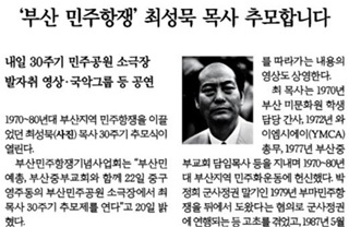 그는 울산과 부산에서 기독교교회협의회(NCCK) 인권위원장을 지내며 지역 내 거의 모든 노동자 민중의 싸움에 함께했다. 그는 90년대 초 민중당...