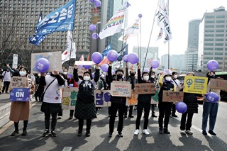 민주노총은 8일 오후 3시 대학로에서 ‘2022년 3.8 세계 여성의날 정신 계승 전국노동자대회’를 개최했다. 대회 두 시간 전에는 서울시청에서...