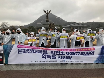 발전소 비정규직 노동자들이 문재인 대통령에게 임기 내 정규직화 약속을 이행하라고 촉구했다. 공공운수노조 발전비정규노조 전체대표자회의는 14일 청...