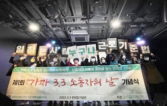 ‘납세자의 날’인 3월 3일, 사업소득자로 위장된 노동자들이 ‘제1회 3.3 노동자의 날’ 기념식을 개최했다. ‘가짜 3.3 노동자’란 타인에게...