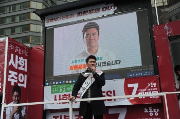노동당 소속 기호 7번 이백윤 후보는 27일 오후 3시, 강남구 대치동 카페 레이지앤트에서 ‘청년이 묻고, 사회주의가 답한다!’라는 주제로 청년...