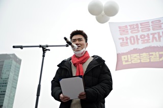 지난 15일 열린 민중총궐기 집회에서 이백윤 사회주의 대통령 후보가 “전 국민 철밥통 시대를 열어가자”라고 발언한 것에 대해 보수 언론이 비난을...