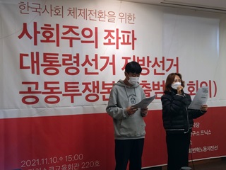 좌파 정당 및 단체들이 대선과 지방선거 대응을 위한 공동투쟁본부를 출범했다. 이들은 12월 말까지 선거인단 투표를 통해 ‘사회주의 좌파 대선 후...