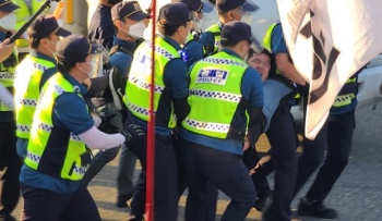 파업 중인 SPC 화물노동자들이 경찰 폭력 중단을 촉구했다. 경찰이 파업 현장에서 ‘불법 시위’를 벌였다고 잡아들인 이들은 26일까지 97명에 ...