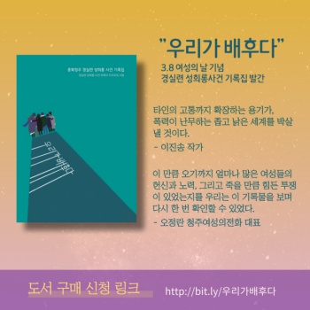 3월 8일 세계여성의 날 충북·청주 경실련 성희롱사건 기록집 <우리가 배후다>가 출간됐다. 해당 사건은 지난해 5월 충북·청주 경실련...