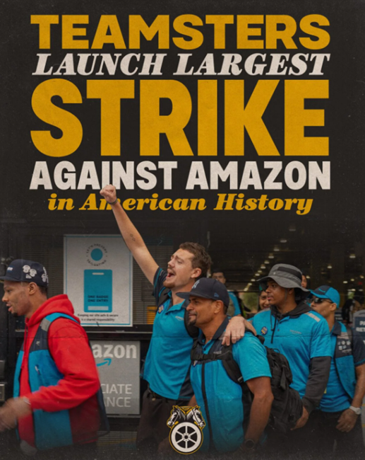 아마존의 샌프란시스코, 시카고, 애틀랜타, 남부 캘리포니아, 뉴욕시 대도시권에 위치한 7개 시설의 물류센터 노동자들과 배송 기사들이 오늘(12월 20일) 파업에 돌입했다. 노조 측에 따르면 미국 역사상 최대 규모의 아마존을 대상으로 한 파업이라고 한다. 스태튼아일랜드 JFK8 물류센터의 노조원들도 파업을 승인했으며 곧 동참할 가능성이 있다.