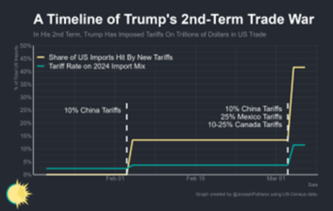 이번 관세 조치가 시행되면 불과 몇 주 만에 미국의 평균 관세율은 20%를 넘어 1차 세계대전 이전 수준으로 상승하게 된다. <조지프 폴리타노>(Joseph Politano)에 따르면, 이러한 조치의 비용은 막대하며, 미국 수입품 1조 3천억 달러, 즉 미국으로 들어오는 모든 상품의 약 42%에 영향을 미친다. 이는 약 100년 전 악명 높은 스무트-홀리 법(Smoot-Hawley Act, 1930년 미국이 시행한 보호무역법) 이후 최대 규모의 관세 인상이 된다.