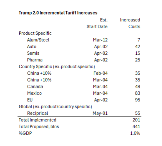 이번 관세로 인해 미국 소비자와 기업이 수입품 구매에 더 많은 비용을 지출하면서 총 1,600억 달러의 추가 비용이 발생할 것이며, 앞으로 더 늘어날 전망이다. 트럼프의 화요일 조치는 그가 제안한 조치의 40%에 불과하다. 다음 조치가 시행되면 수입 비용은 6,000억 달러를 넘어서며, 이는 GDP의 1.6%에 해당하는 수준이 된다.