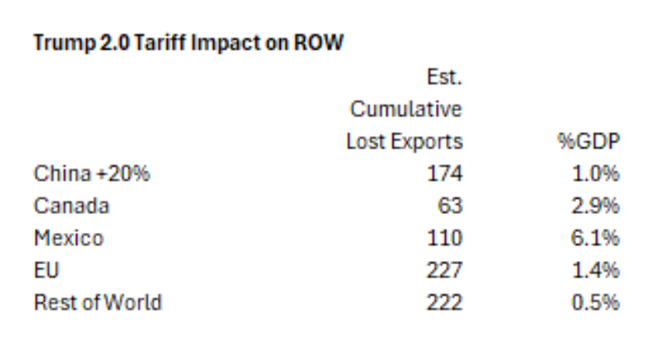 미국 제조업 전체에 미치는 영향은 수출 감소로 인해 GDP의 거의 1%에 이를 수 있다.