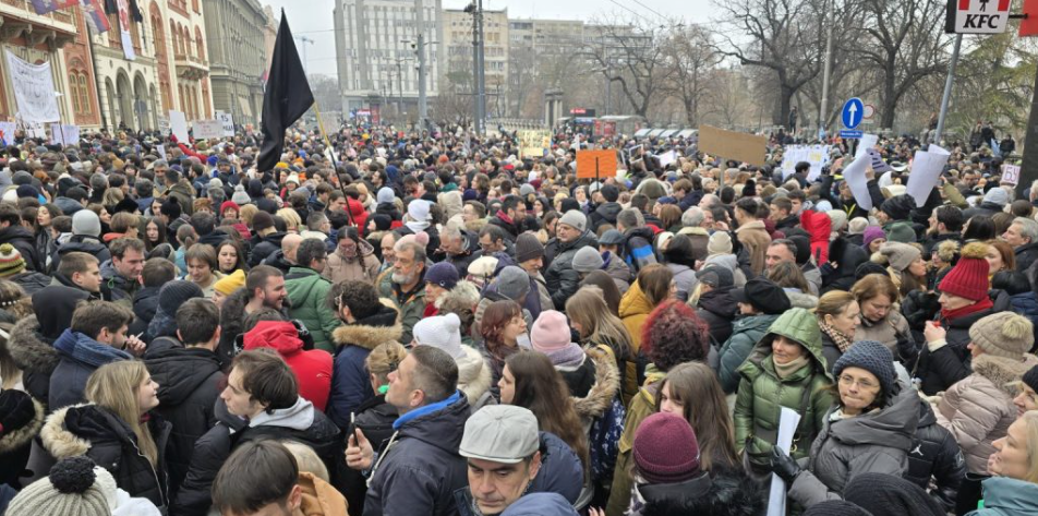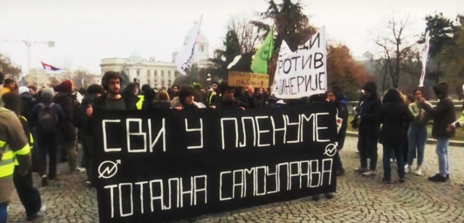 베오그라드에서 진행 중인 시위 현장의 현수막: “모두 플레눔으로 – 완전한 자치로
