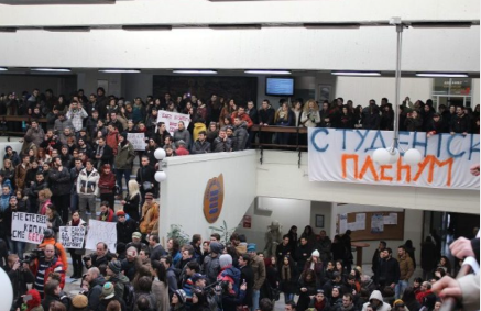 2015북마케도니아 스코페에 위치한 성 치릴로와 메토디오스 대학교(Ss. Cyril and Methodius University) 점거 당시 열린 학생 플레눔.