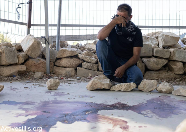 7월 30일, 이스라엘 식민군은 고(故) 아우다 하탈린(Awdah Hathaleen)의 친구와 친척들이 모여 있던 조문 텐트를 습격하고 움 알-카이르(Umm al-Khair)를 군사 지역으로 선포해 손님과 기자들이 마을에 머무르지 못하도록 막았다. 또한 그들을 향해 충격 수류탄을 발사해 공격하고, 두 명의 연대 활동가를 구금했다. 이후 불도저를 몰고 온 정착민들은 국경 경찰의 보호를 받으며 마을에서 계속 작업을 이어갔다. 사우스 헤브론 힐스(South Hebron Hills) 출신의 저명한 활동가였던 아우다 하탈린은 정착민들의 공격으로 이스라엘인 이논 레비(Yinon Levi)에 의해 살해됐다. 레비는 약 30미터 거리에서 하탈린을 향해 총을 발사했으며, 당시 하탈린은 마을 커뮤니티 센터 울타리 뒤에 서 있었다. 그가 쓰러진 피 자국은 어제까지도 현장에 그대로 남아 있었다. 식민군은 같은 날 밤 마을에서 팔레스타인인 8명을 체포했으며, 이 중 한 명은 정착민의 공격으로 머리에 부상을 입은 아마드 하탈린(Ahmad Hathaleen)이다. 출처: 아비샤이 모하르(Avishay Mohar), 오렌 지브(Oren Ziv), 모사브 샤웨르(Mosab Shawer) / Activestills.