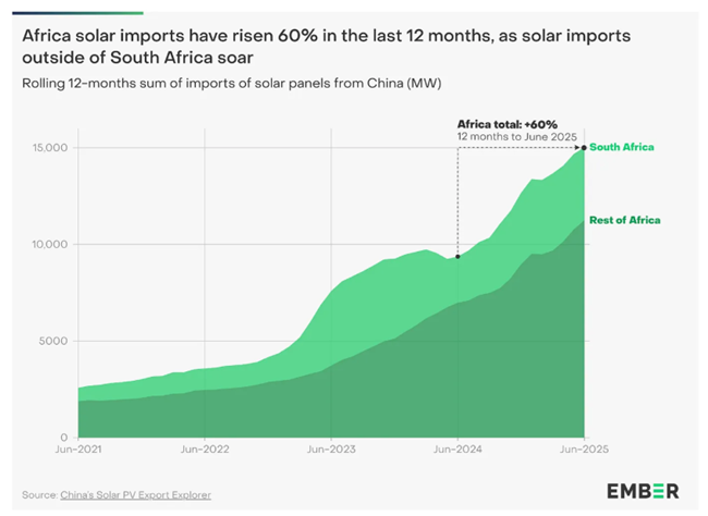 전기화와 빈곤의 다른 한 끝에서는아프리카로의 중국산 태양광 패널 수출이 급증하고 있다는 극히 고무적인 소식이 있다.