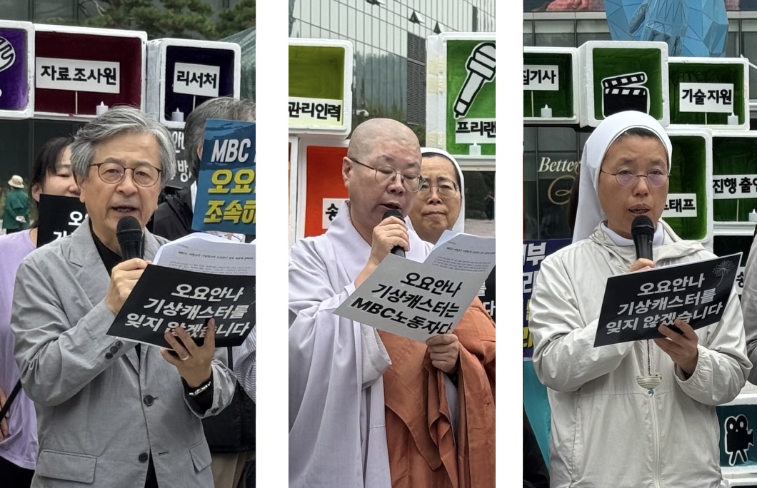 천주교여자수도회장상연합회JPIC분과 위원장인 여호수아 수녀는 “고 오요안나 님은 단지 개인적인 고통 때문에 세상을 떠난 것이 아니라, 비정규직이라는 이유로, 프리랜서라는 이유로 구조적 차별과 직장 내 괴롭힘을 견뎌야 했던 불합리한 현실이 그의 생명을 앗아갔다”면서 고인의 죽음 이후 “1년이 지난 지금까지도 책임을 회피하는 것이 과연 공영방송으로서 MBC가 보일 수 있는 태도인가” 지적했다.