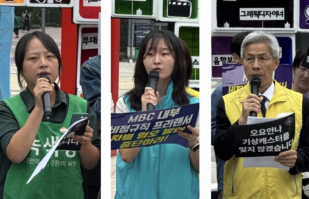 ‘블랙리스트 이후’ 총괄디렉터 정윤희 작가는 “불과 몇 달 전까지 언론과 문화예술 등에 대한 전방위적인 표현의 자유를 탄압해 온 입틀막 정권에 의해, 소위 ‘바이든 날리면’ 사건으로 시달렸던 MBC를 지지했던 사람으로서 MBC의 묻는다”면서 “표현의 자유가 왜 중요한가? 사람이 생각하고 일하며 살아가는 기본권이기 때문이다”, “사람이 사람답게 일하며 살아갈 권리를 누리는 것은 MBC 간부와 정규직에게만 있는가” 일갈했다.