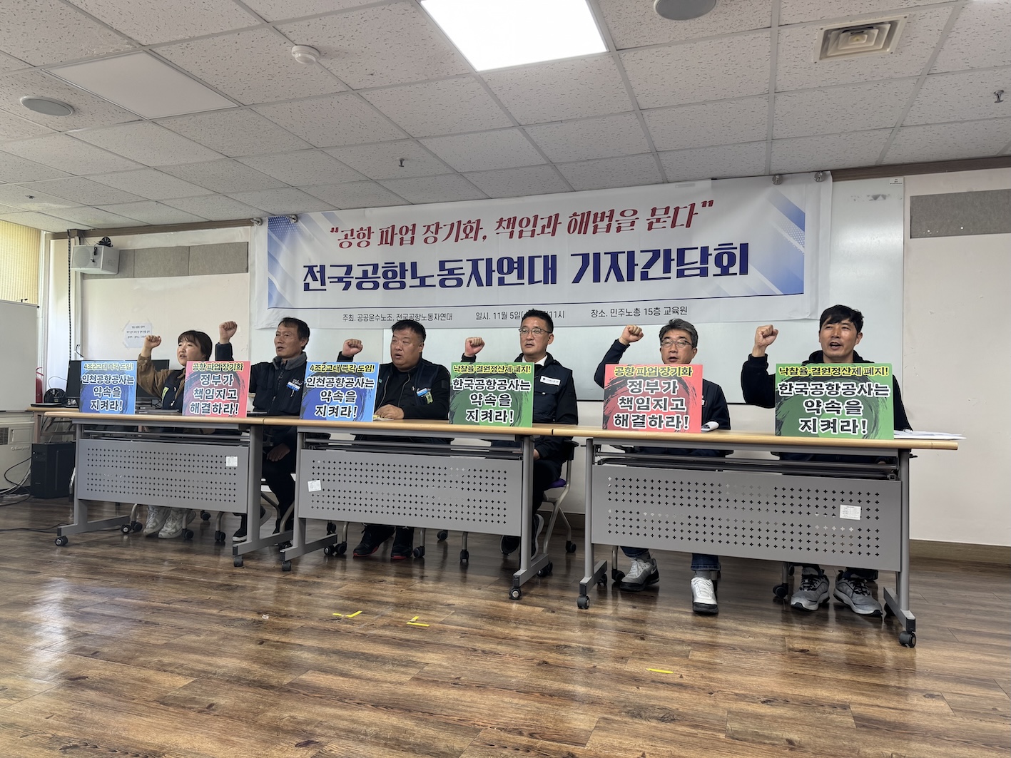 "공항 파업 장기화, 책임과 해법을 묻다" 전국공항노동자연대 기자간담회 현장. 참세상