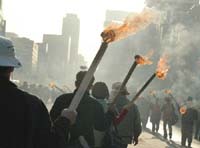 한미 FTA 2차 협상이 드디어 시작되었다. “입국과 동시에 출국해야 마땅할” 75명의 미국 협상단이 9일 시위대의 항의 속에 들어왔다. 10일부터 14일까지 한미 FTA 협상단은 민중의 운명을 놓고 ‘그들만의 밀실 합의’를 할 작정이다. 그러나 이미 전 국민적으로 한미 FTA는 노무현 정부의 ‘사기극’이라는 인식이 팽배하고 정부가 ‘미쳤다’는 비판이 커지고 있다. 다급한 정부가 반(反) FTA 시위에 대해 엄정대처 하겠다고 이성 잃은 대국민 공갈협박까지 일삼고 있지만 오히려 민심은 FTA 반대로 들끓는다. 민중은 재앙을 부를 한미 FTA를 반대한다. 초민족자본의 무한착취 기회만 보장하고 민중의 삶과 권리를 파괴할 한미 FTA를 막아내는 것은 이번 한 주간의 투쟁에 달려 있다. 그라운드는 이미 불타고 있다. 우리는 IMF 이후 김대중-노무현 정부로 이어지는 ‘파탄난 신자유주의 10년’에 대해 민중의 분노와 힘으로 역사적 심판을 내려야 한다. 민중을 배반하고 민주주의를 무시하고 추진되는 FTA를 전면 중단시키고 노무현 정부 퇴진을 요구해야 한다. …중략… 지난 십 수 년으로 충분하다. 신자유주의 세계화로 노동자 민중의 삶의 위기를 극복할 수 없음은 분명히 확인되었다. 노동자 민중의 권리를 파괴하고 착취를 강화함으로써 자신의 위기를 극복하려는 자본의 전략을 이제는 끝장내야 한다. 7월 10일 ~ 14일, 서울 신라호텔에서 진행되는 한‧미 FTA 2차 본협상을 저지하는 투쟁에 전 민중이 나서야 한다. 빈곤과 폭력을 확대하는 신자유주의 금융‧군사 세계화를 추진하는 노무현 정권에 정면으로 맞서야 한다. 민중의 의사를 철저히 배제한 채 초민족 자본의 이익만을 옹호하며 한‧미 FTA를 강행하는 한 편, ‘올해도 농사짓자’는 대추리 주민들을 군화발로 짓밟고 동아시아 민중의 평화를 위협하는 전략적 유연성, 평택 미군기지 확장을 강행하는 노무현 정권을 퇴진시키는 투쟁에 떨쳐나서야 한다. FTA 반대는 전 세계적인 흐름이다. 스위스, 카타르, 아랍 에미리트 등 39개국이 미국과의 FTA 협상을 중단했다. 에콰도르 민중들은 FTA를 추진하는 대통령 퇴진을 요구하며 봉기를 일으켰고 결국 협상은 중단됐다. 말레이시아, 태국 등지에서도 미국과의 FTA에 반대하는 민중 투쟁이 계속되고 있다. 다른 세계는 가능하다. 그리고 민중의 삶의 위기에 대한 대안은 오직 노동자 민중의 힘과 지혜를 통해서 형성될 수 있다. 전 세계에 위계적인 수탈 체제를 공고히 하려는 미국의 전략에 맞서, 한‧미 FTA 저지투쟁을 통해 빈곤과 폭력, 착취와 파괴를 양산하는 신자유주의 금융세계화에 대항하는 세계 곳곳의 민중들과 함께 하자. 초민족자본의 세계화를 거부하고 민중의 대안을 세계화하자. 7월 12일, 가자! 신라호텔로, 청와대로!
