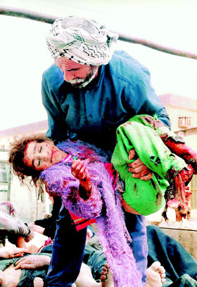 걸프전이 끝나고 나서 사담이 재집권 했을 때는 최소한 몇 달 지나지 않아 마을마다 더위를 식히기 위해 설치된 스프링쿨러가 다시 돌았다. 스프링쿨러가 돌기 위해서는 많은 석유가 필요한 것은 아니다. 그러나 미국은 석달이 지나도록 석유 이권을 틀어쥐고 60도의 더위를 무참히 내려다보고만 있다. 그리고 밥을 굶는 이들도 돌보지 않는다. 그렇다고 미국이 한 것이 전혀 없는 것은 아니다. 이들은 자동차를 타고 다니며 바그다드 중심 거리를 돌며 사탕을 뿌리고 아이들 학용품을 뿌렸다. 이라크 사람들을 거지로 취급하며.
