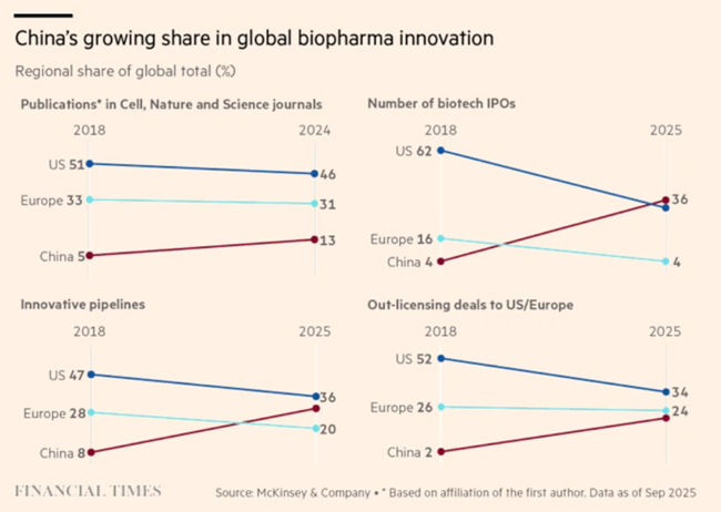 <세계 바이오의약 혁신에서 중국의 확대되는 비중>