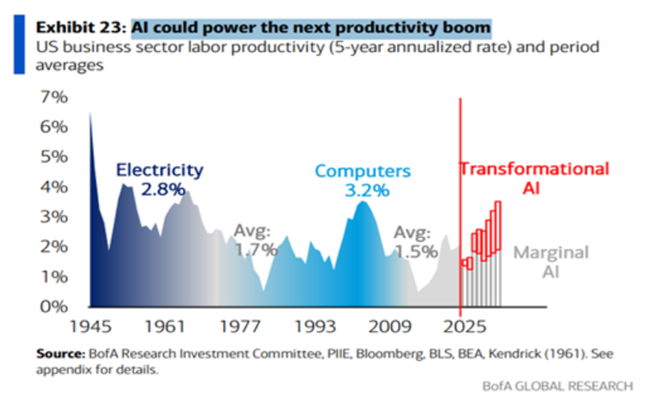 그러나 설령 인공지능 거품이 붕괴해 미국 경제가 경기침체에 빠진다 하더라도그 침체는 오래가지 않을 가능성도 있다인공지능이 모든 부문에 걸쳐 광범위하게 도입되면서 미국의 생산성 수준에 질적인 도약이 일어날 수 있기 때문이다많은 주류 경제학자들은 이런 전망에 낙관적이다.