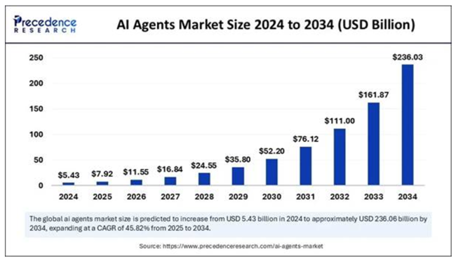 인공지능 에이전트가 주도하는 경제도 모습을 드러내고 있다소비자용 인공지능 에이전트는 이미 여행 예약을 하거나 소액 구매를 소비자 대신 자율적으로 처리하기 시작했다머지않아 이들은 더 복잡한 구매에서도 처음부터 끝까지의 과정을 맡게 될 것이다가격과 조건을 협상하고배송과 반품을 조율하며기계의 속도로 다른 에이전트들과 거래를 수행하게 된다. 2024년 기준 54억 달러 규모였던 전 세계 인공지능 에이전트 시장은 2034년까지 2360억 달러에 이를 것으로 전망된다.