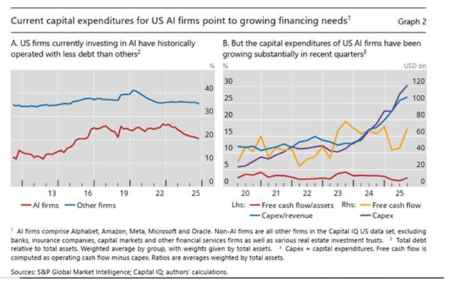 부채 조달이 점점 더 일반화되면서 부채의존도는 높아지고 있다여기에는 수익이 기대만큼 실현되지 않거나 금융 여건이 긴축될 경우 거품이 붕괴할 위험이 존재한다더욱이 인공지능 투자에서 발생하는 수익성은 반도체 칩의 잦은 감가상각에 매우 민감하다이는 이익률을 압박하고그 결과 추가적인 부채 조달을 필요로 하게 만든다.